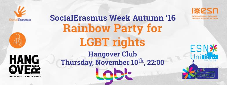 Ready for another ESN party? The ESN team will be waiting for you at our ►Rainbow Party for LGBT rights◄ on Thursday, November 10th at 22:00 in Hangover Club.